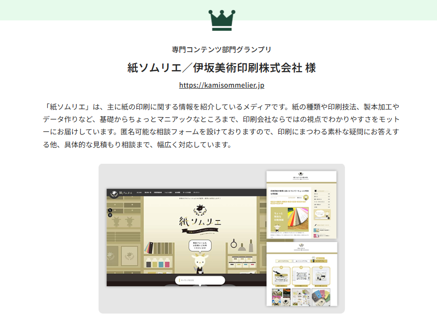 このたび、伊坂美術印刷株式会社が運営するWebメディア 「紙ソムリエ」 が、「コンテンツマーケティング・グランプリ 2025」専門コンテンツ部門グランプリ を受賞いたしました。
